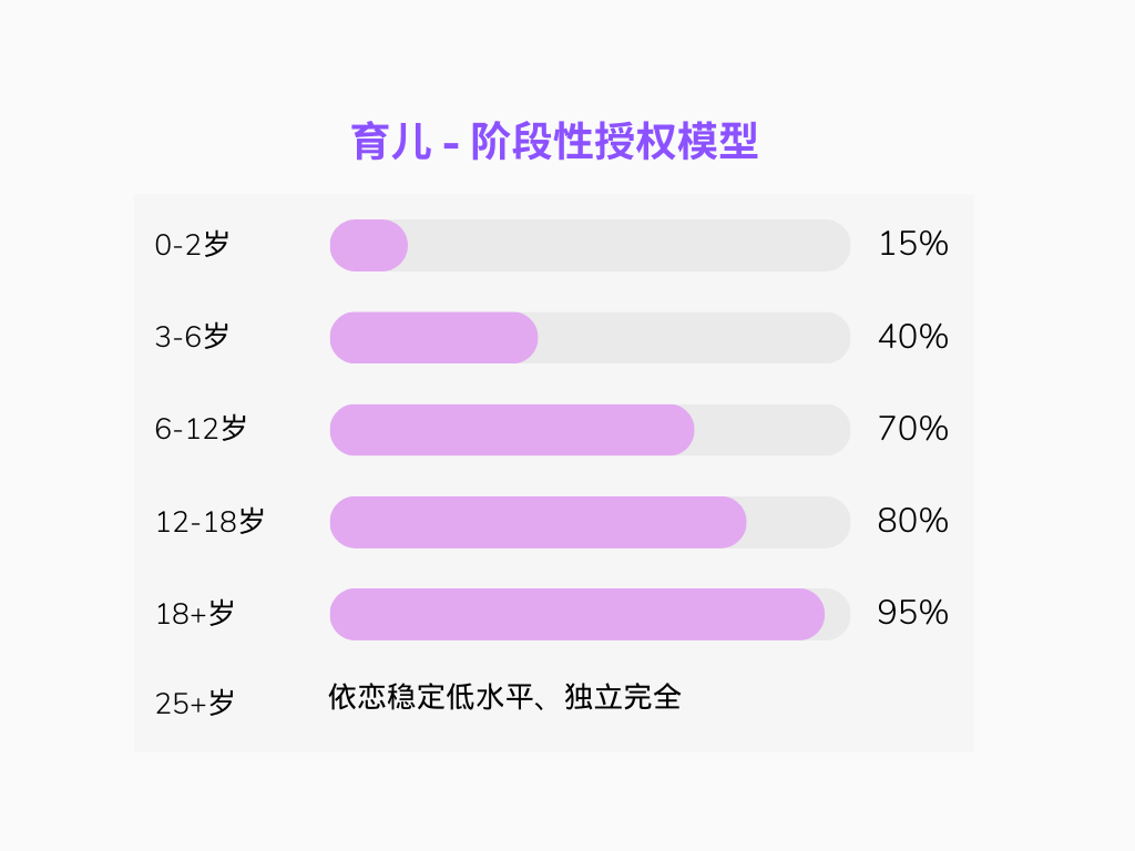 整体比例只是趋势,不是精准数字。它用于提醒父母:孩子需要的依赖与独立比例,会不断变化。